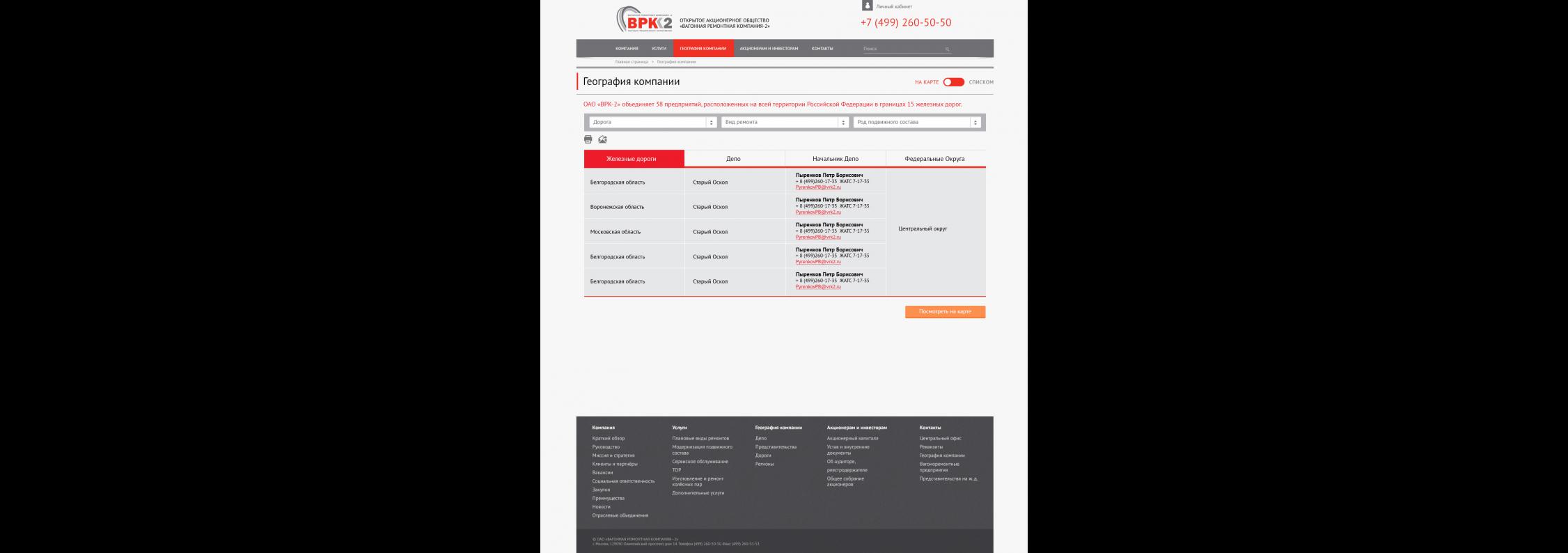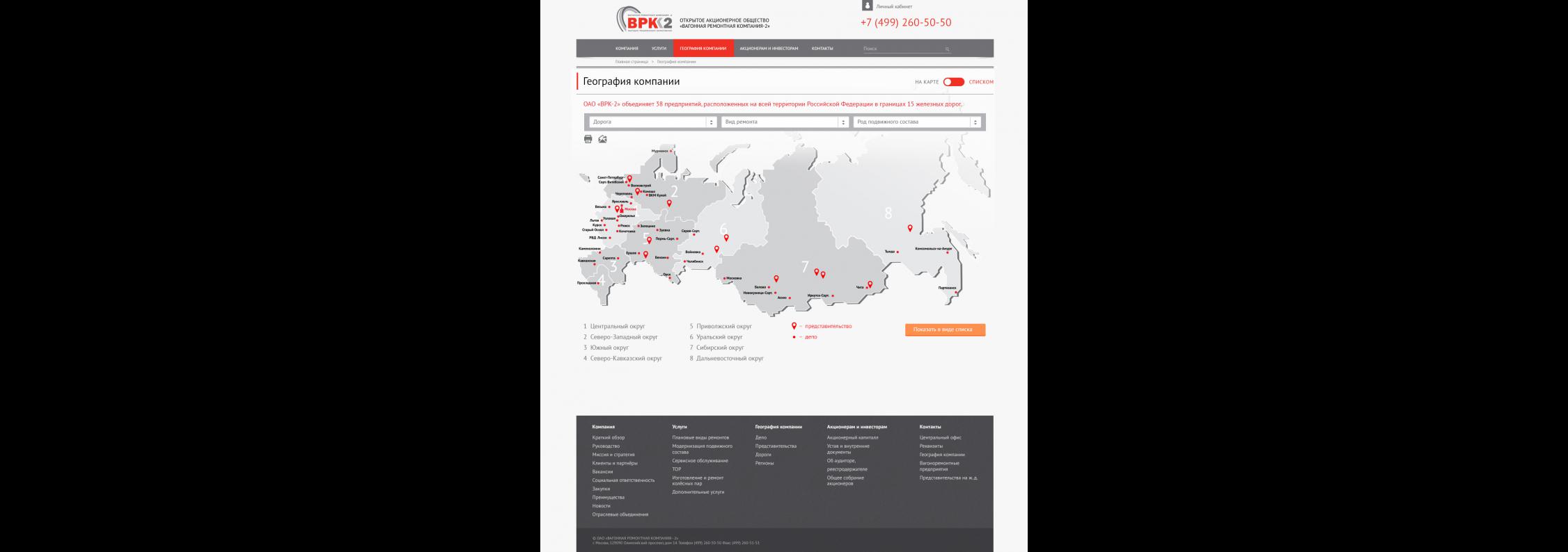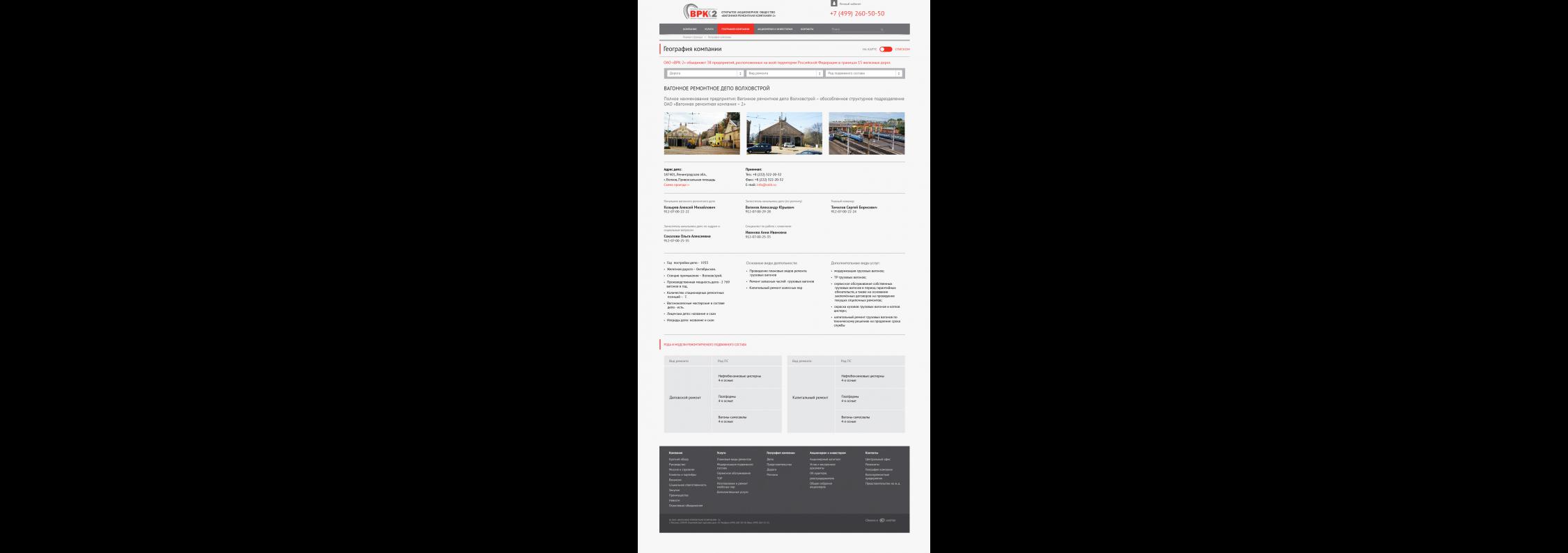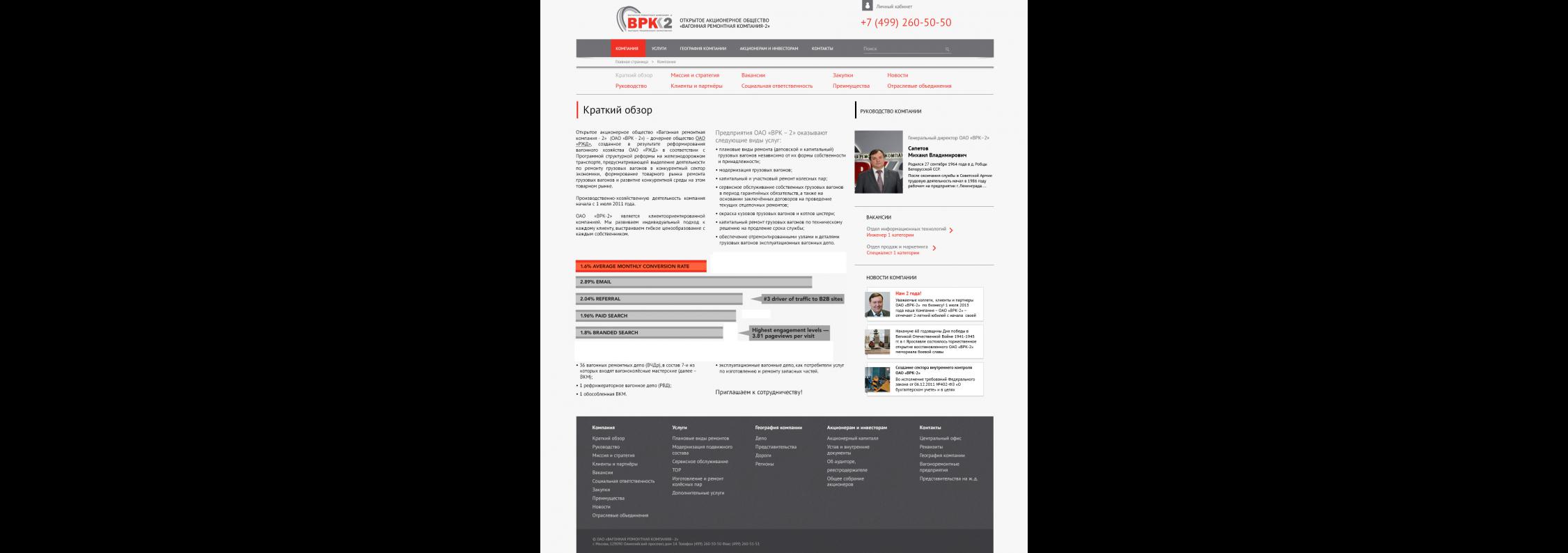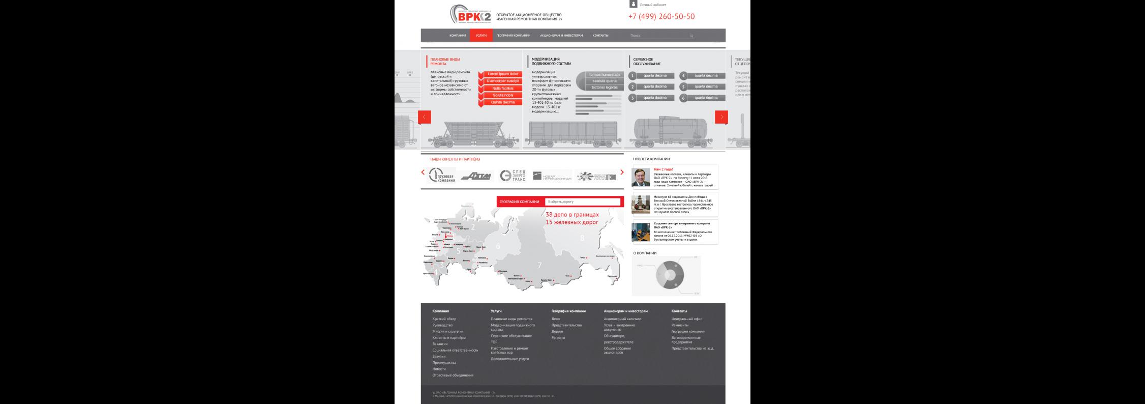 Сайт открытого акционерного общества «Вагонная ремонтная компания-2» являющегося крупнейшим вагоноремонтным предприятием, и в настоящее время по праву занимающего одно из лидирующих положений среди отечественных компаний аналогичного профиля.